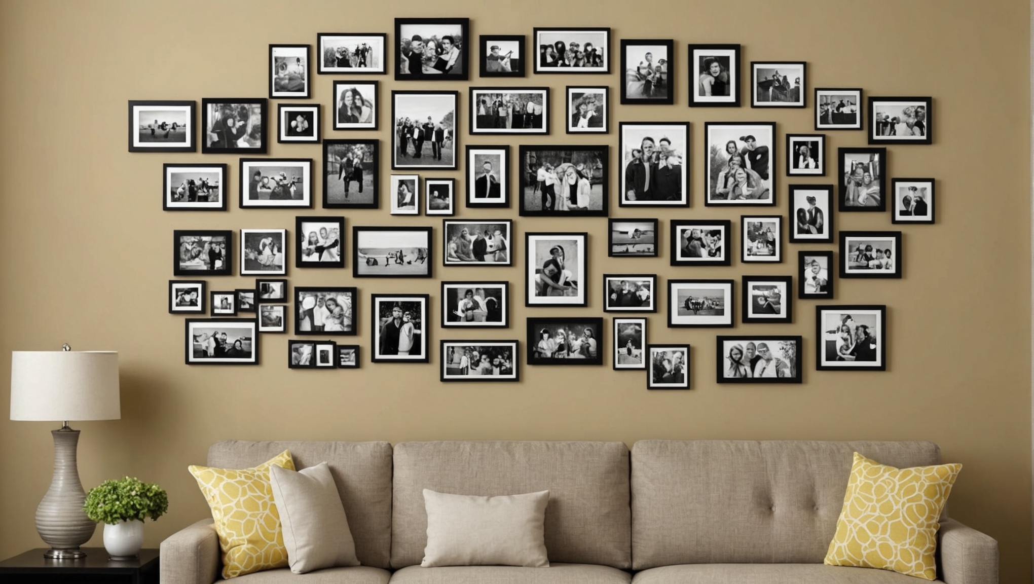 Choisissez des photos qui racontent une histoire ou évoquent des souvenirs précieux. Pour un impact visuel maximal, alternez entre photos en couleur et en noir et blanc. Disposez les cadres en utilisant une disposition symétrique pour un look ordonné, ou asymétrique pour un style plus artistique.